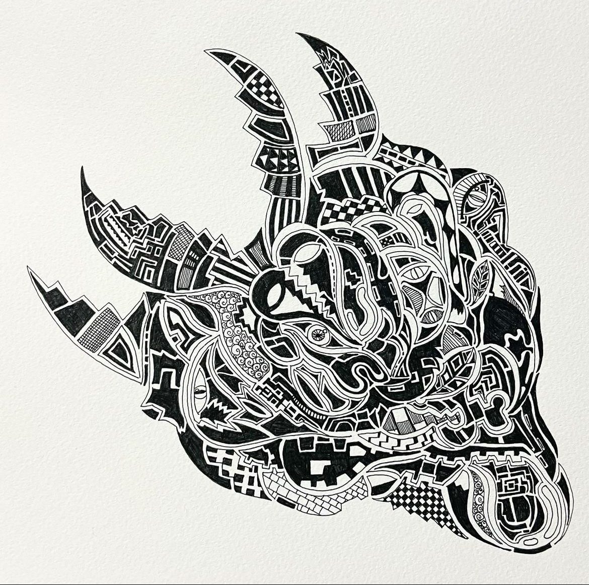 蔓状にうねうねした模様に少し虫の触角やハサミを